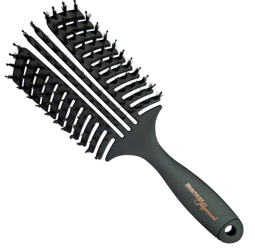 De Hercules Vent Brush heeft speciaal geselecteerde everzwijnharen. Deze haren zijn verwerkt in het speciale curvy design. Dankzij dit design is de borstel uitermate geschikt om het haar op extreem zachte wijze te ontklitten.