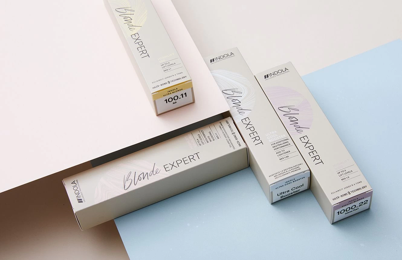 Tip: Meng de Blonde Expert Lightener met de Indola Blonde Expert Ultra Cool Booster, voor een neutraal en minder grijs resultaat op donkere basissen.