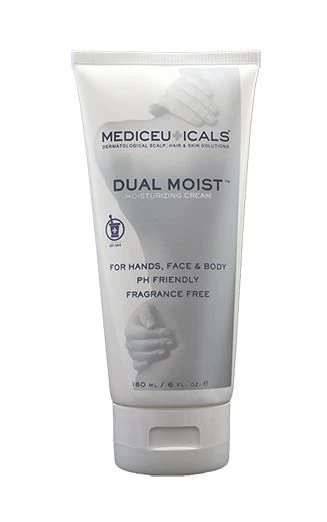 Droge handen en lichaam? Mediceuticals Dual Moist doet wonderen! De Mediceuticals Dual Moist is een hydraterende hand- en bodycrème en geeft de huid 24 uur hydratie. Zelfs geschikt voor bij een zeer droge of geïrriteerde huid, want dit product is parfumvrij en pH vriendelijk. De crème is dagelijks te gebruiken en biedt optimale verzorging en bescherming.