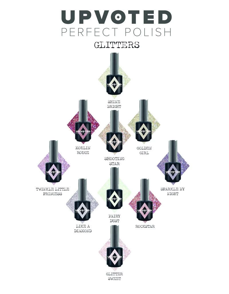 UPVOTED Glitter Soak Off Gelpolish hardt uit in slechts 60 seconden in LED-licht en in 2 minuten in UV-licht.