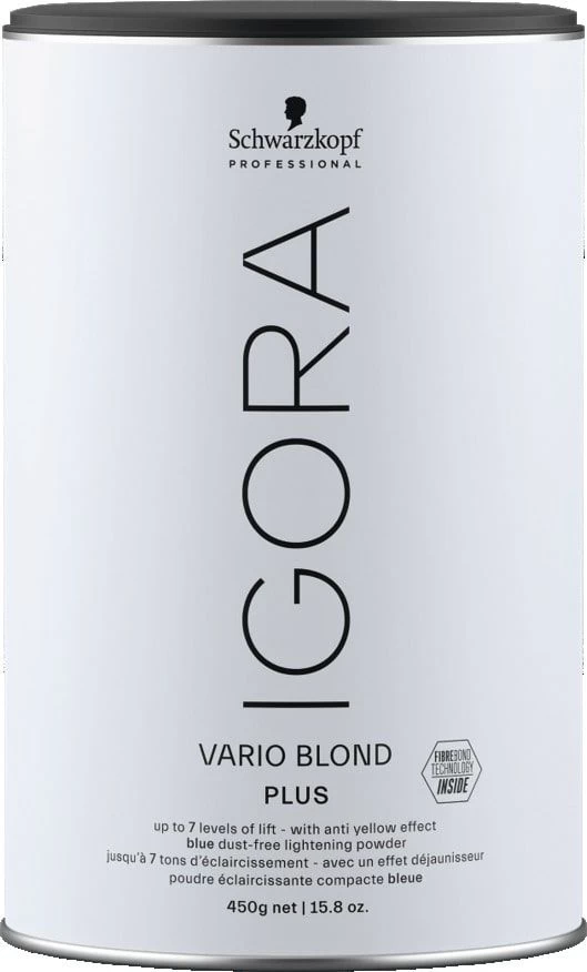 De Schwarzkopf Igora Royal Vario Blond Powder Lightener plus is een stuifvrije blondeerpoeder met die tot 7 tinten oplicht en geeltinten neutraliseert. De blondeerpoeder is verrijkt met de Fibre Bond Technologie die de haarvezels versterkt en haarbreuk vermindert.