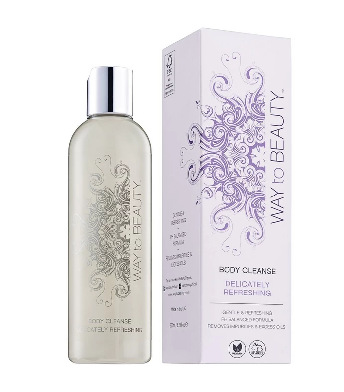 Way to Beauty is een uitgebreide productlijn die de huid een lichte tan geeft. Het is dé oplossing als je snel een mooie natuurlijk bruine kleur wilt. Speciaal voor onder de douche heeft het merk de Body Cleanse ontwikkeld. Het heeft een verfrissend effect op de huid terwijl de zelfbruiner keurig op de huid blijft zitten. Hiermee voorkom je vlekken en strepen nadat de zelfbruiner is aangebracht. Tegelijkertijd bevat deze douchecrème een vocht inbrengend ingrediënt waardoor de huid wordt verzorgd en verzacht.